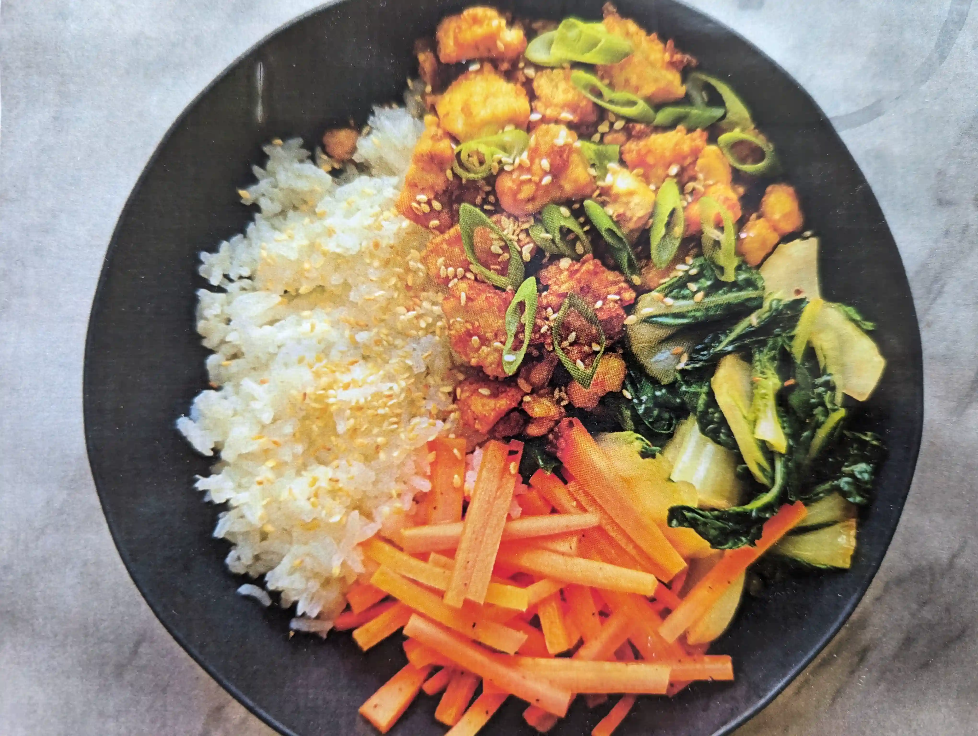 Crispy tofu bits with jasmine rice and veggies. Prep time Total time 30m 40m Ingredients Ingredient Quantity Firm tofu 454g Corn Starch 1/2 cup Green Onion 2 Fresh Ginger 2 inches Garlic 6 cloves GF Tamari or Soy sauce 4 Tbsp. Sesame Oil 4 Tbsp....
